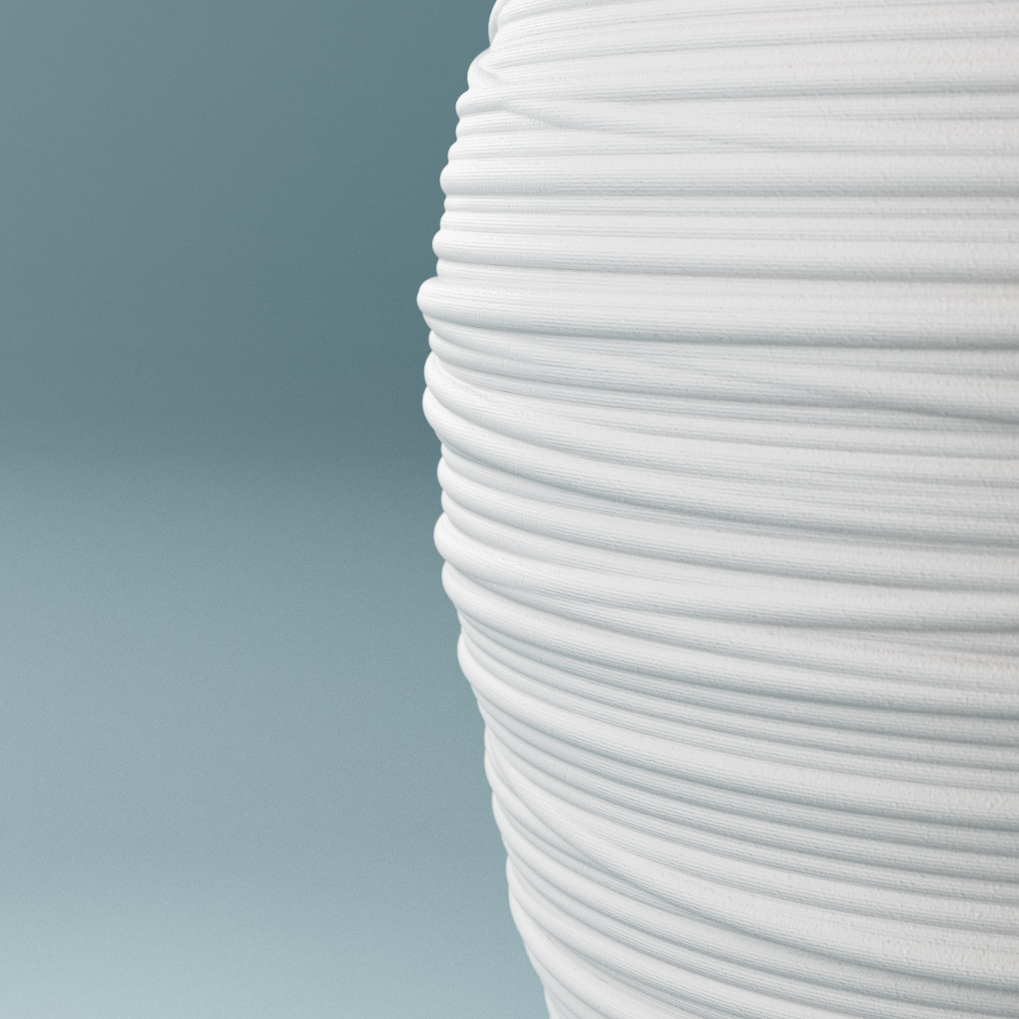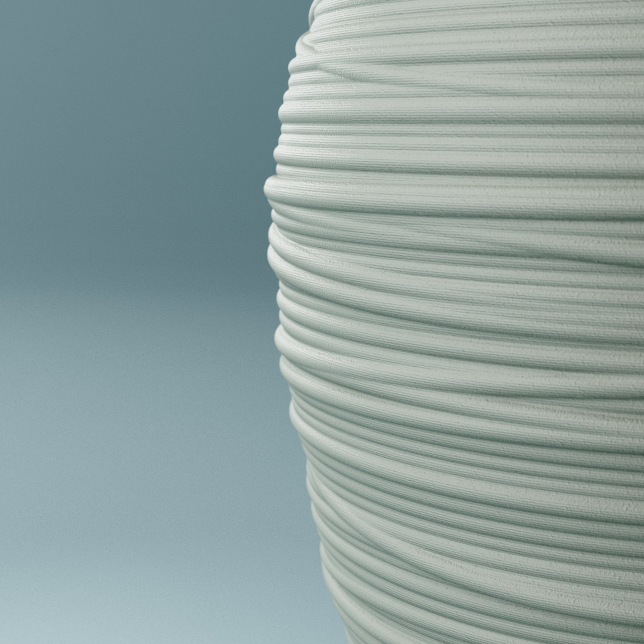 Its tactile surface carries delicate traces from the printing process, layer by layer, like wind-blown sand forming soft ridges. A quiet rhythm you can feel when you run your fingers across it. BAST draws its shape from nature’s tangeling plants and its name from the raw inner fibers beneath the bark. The fibers also resembles robes, lines, strings, and wicks.