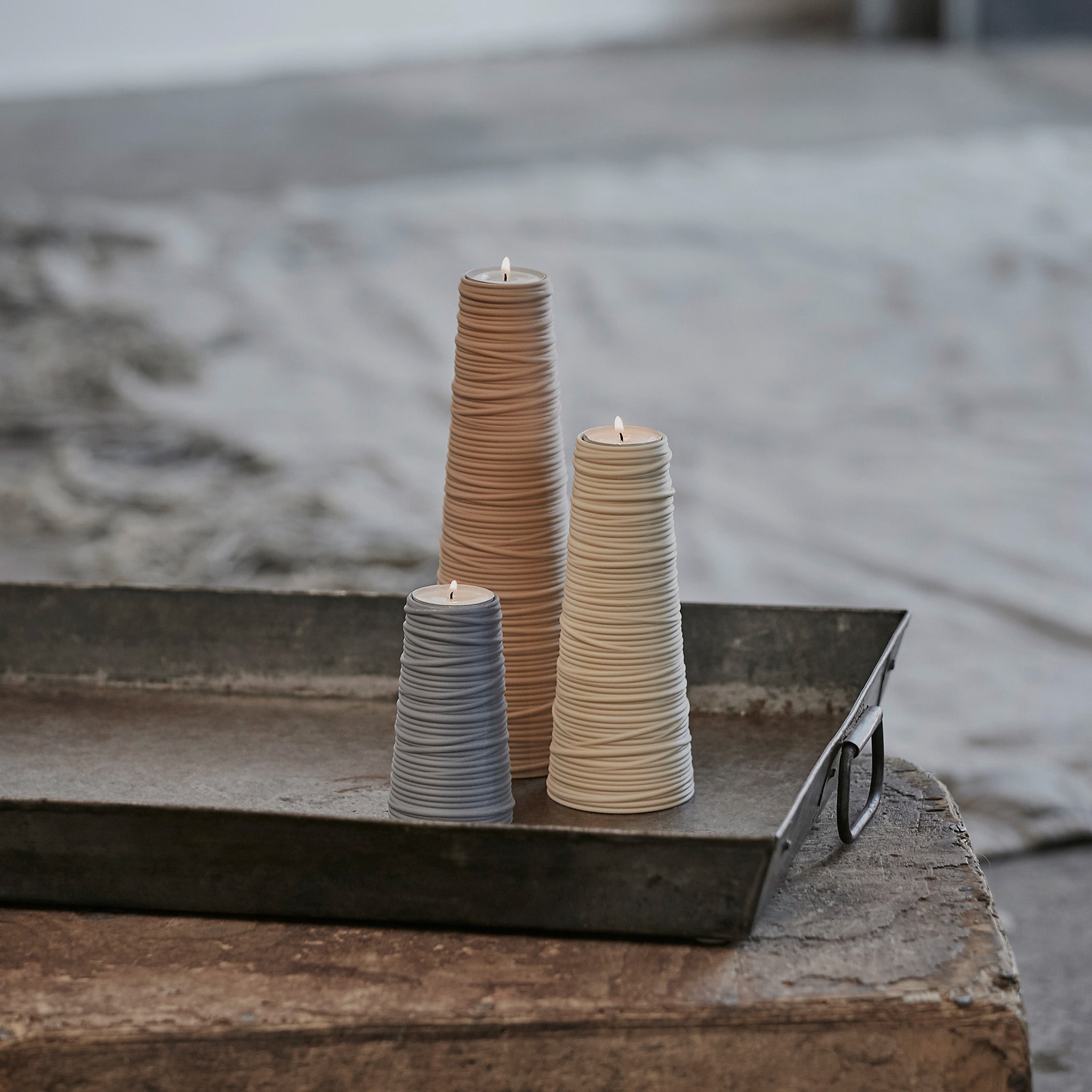 Shaped by nature’s lines and softened by time, BAST conic tea light holders bring a quiet presence to your home. Inspired by inner bark fibers, sea-worn ropes and windblown textures, each form invites its own interpretation. Maybe it’s string. Maybe it’s waves.